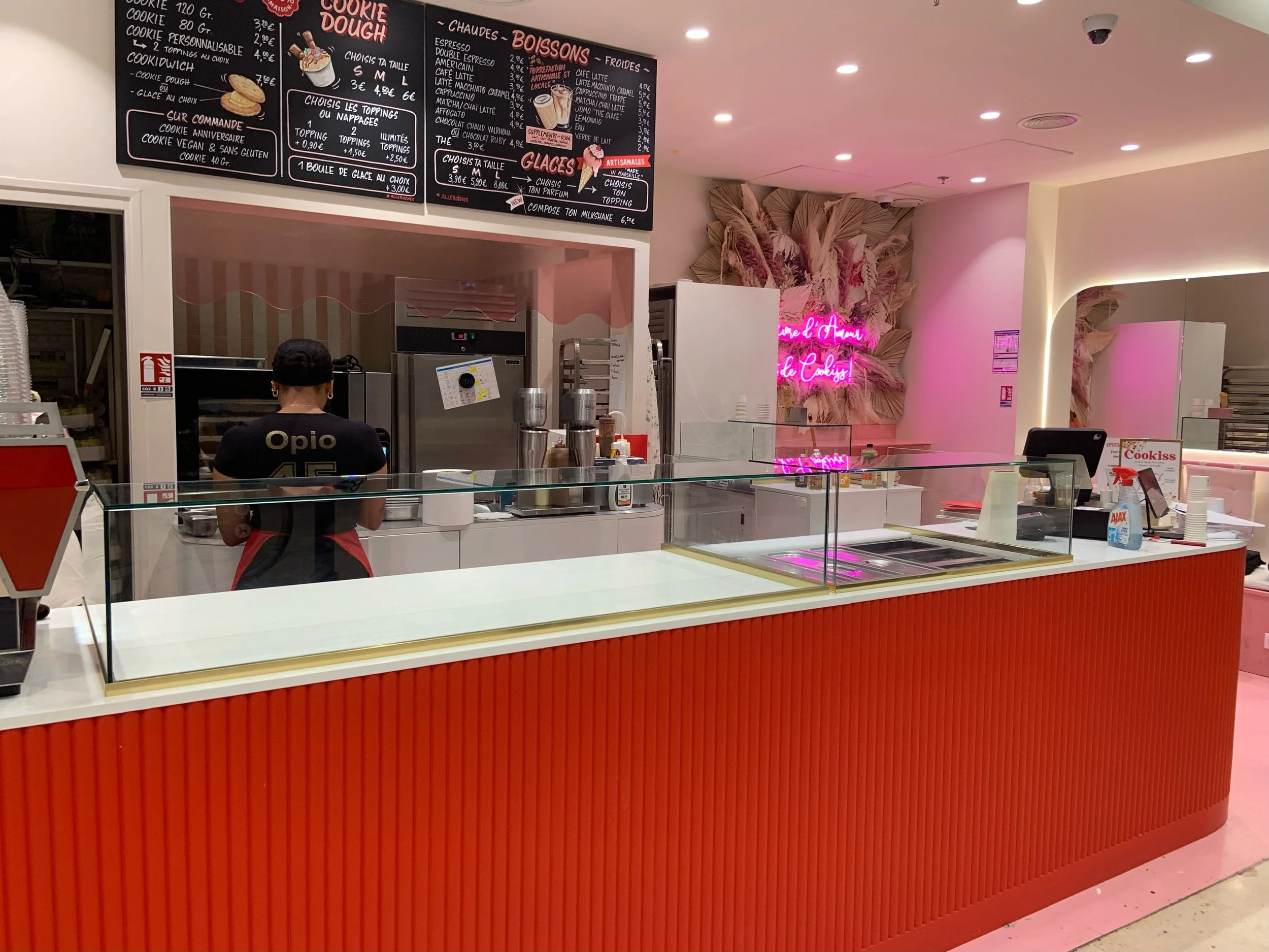 Une fois arrivée dans le parking commercial des terrasses du port, l’équipe a rencontré le client, et ont directement commencé à installer la vitrine.